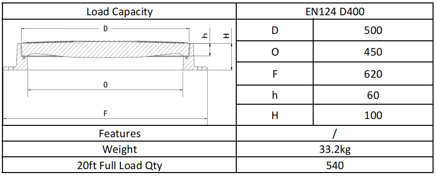 EN124 D400 standard, suit most vehicles.