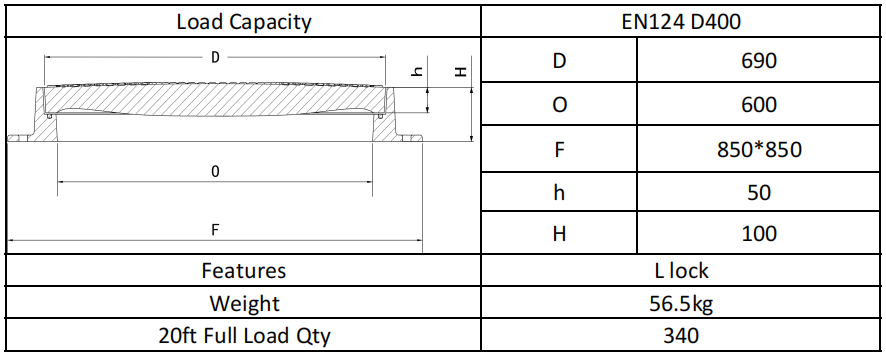 JM-MR109D Composite Manhole Cover conforms to BS EN124 D400 Class And is suitable for Carriageways of roads, hard shoulder and parking areas, for all types of vehicles.