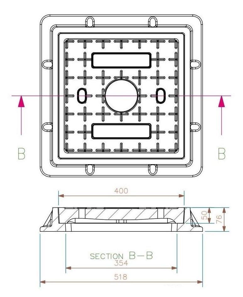 Innovative SMC Composite material improvements and structure perfomance, JM-MS221C Light Composite Manhole Cover conforms to BS EN124 C250 Class and is suitable for gullytops installed in the area of curbside channels of roads.