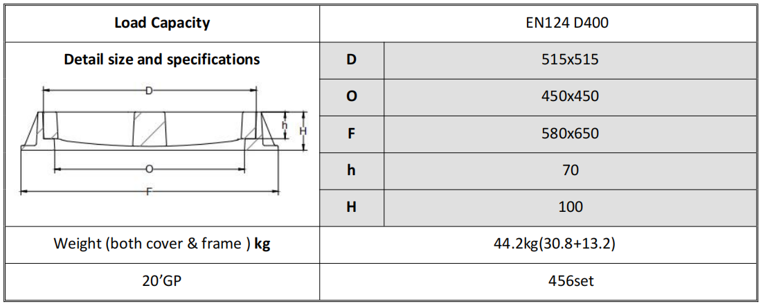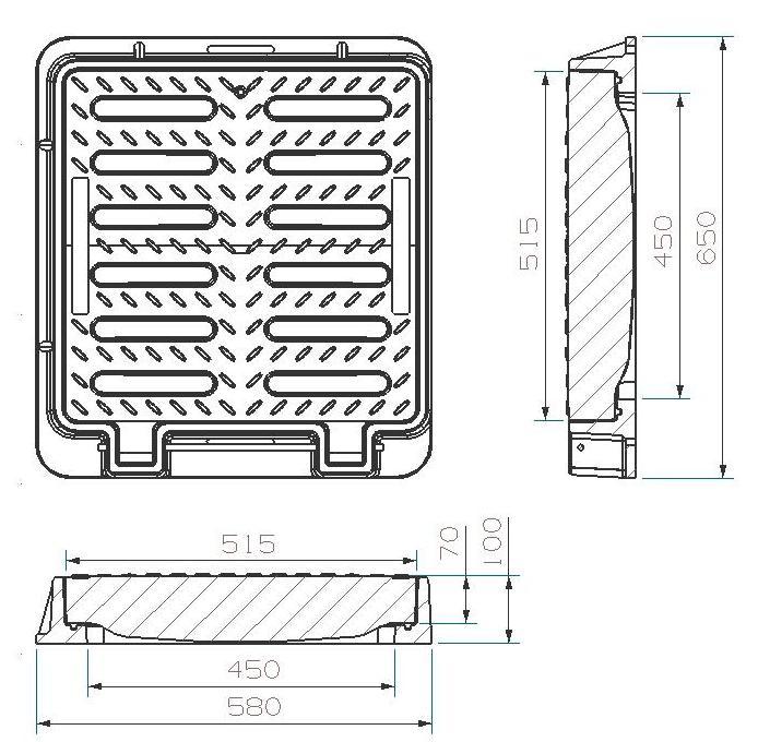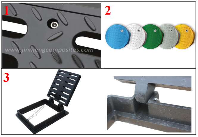 Innovative SMC Composite material improvements and structure perfomance, JM-WG401D-H high loading Composite Gully Grate conforms to BS EN124 D400 Class and is suitable for carriageways of roads (including pedestrian streets), hard shoulder and parking areas, for all types of road vehicles.