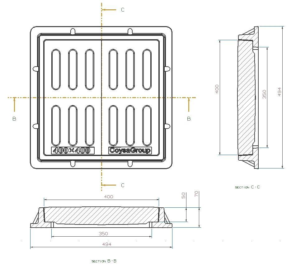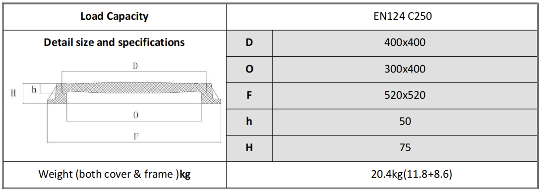 | 3 | For gullytops installed in the area of curbside channels of roads | C250 | 250 kN | 56,200 lbs. |